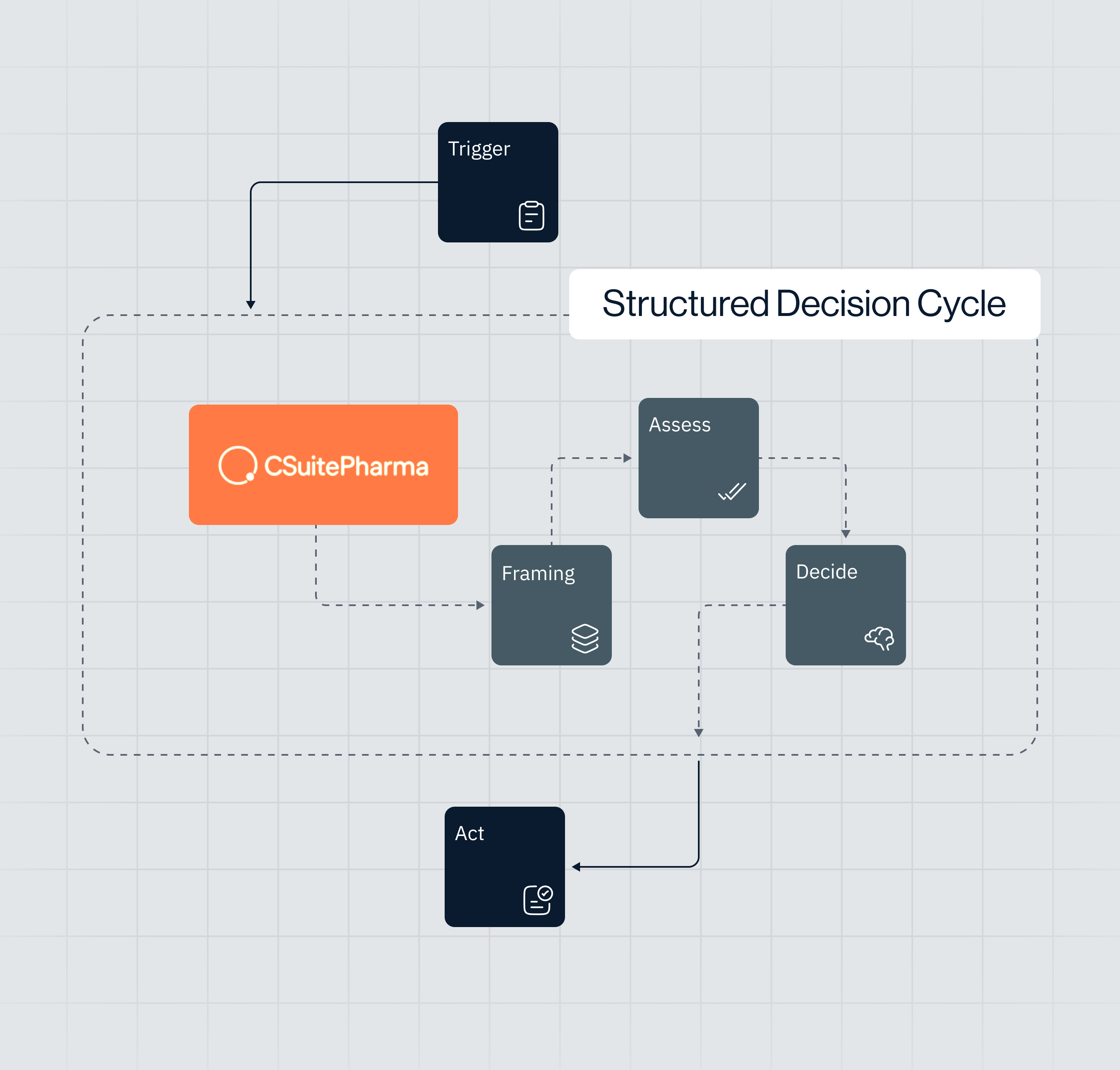 CSuitePharma does not aggregate information. It structures decisions within governance, regulatory, and board accountability frameworks.